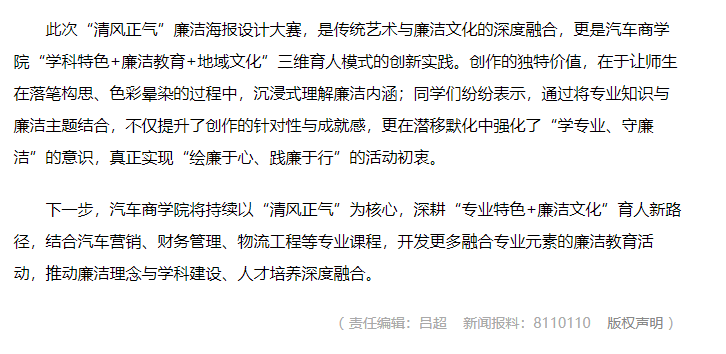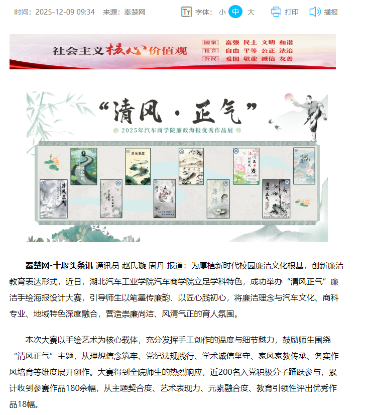【秦楚网】湖北汽车工业学院:“清风正气”廉洁海报大赛圆满举办