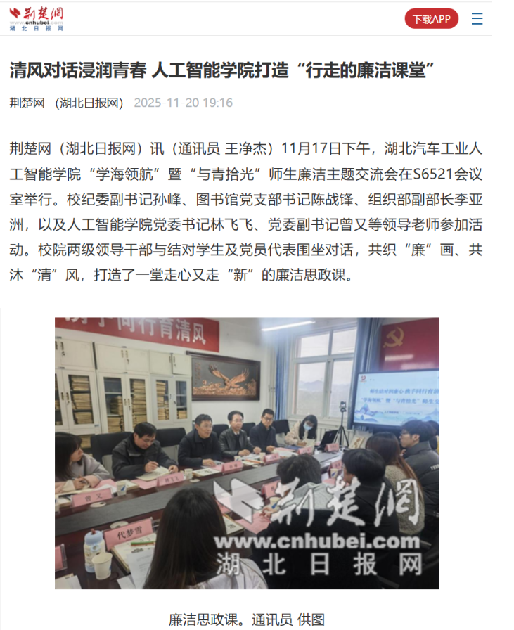 【荆楚网】清风对话浸润青春 人工智能学院打造“行走的廉洁课堂”