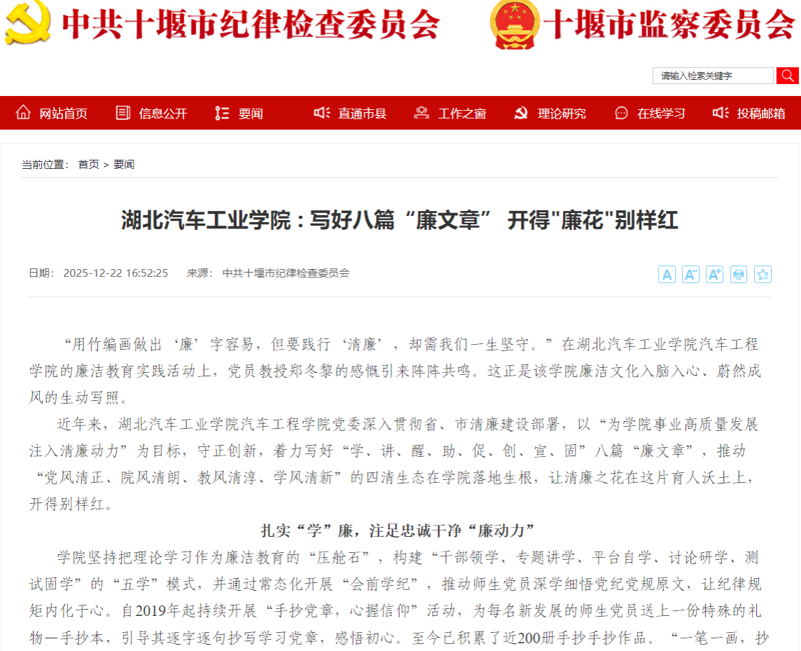 【十堰市纪委网站】湖北汽车工业学院 : 写好八篇“廉文章” 开得"廉花"别样红